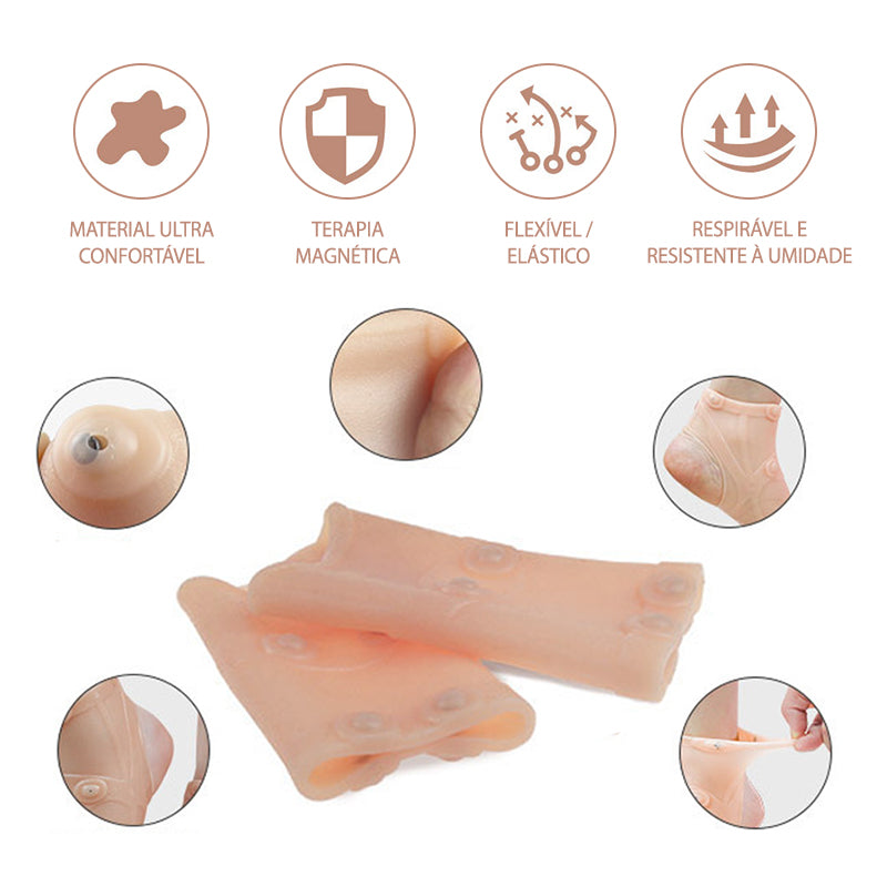 Além disso, ela possui pontos magnéticos localizados em pontos específicos ao longo das linhas de energia do pé, aumentando o fluxo sanguíneo e promovendo um efeito de aquecimento magnético que ajuda a relaxar os músculos e aliviar o desconforto, não invasivo, sem causar efeitos colaterais.