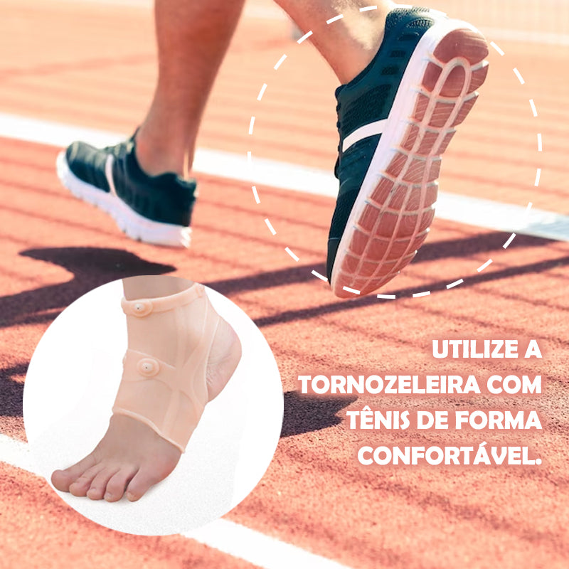 Pela sua característica super ajustável, discreta e leve, é possível utilizar a tornozeleira com tênis de forma confortável.